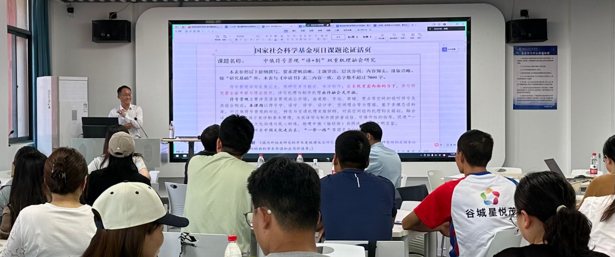 为切实做好2024年国家社科基金申报工作,426日下午,广东外语外贸大学博士生导师黄忠廉教授应邀在产教大楼XS301作题为“国社科项目申报及修改指导”专题讲座。外国语学院院长杨荣广、副院长翟全伟、外国语学院教师以及马克思主义学院、艺术学院、体育部部分教师参会,会议线上线下同步进行。