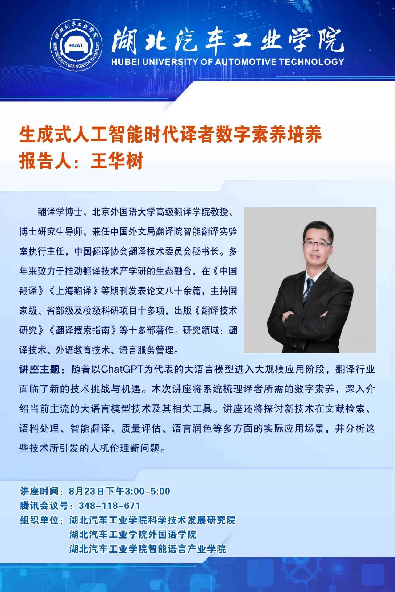 【学术讲座】王华树教授:生成式人工智能时代译者数字素养培养