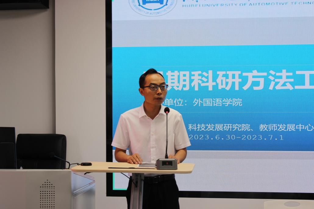 为深入开展主题教育,解决广大外语教师科研难的问题,外国语学院2023首届暑期科研工作坊于6月30日上午在学校产教大楼SX-301隆重开幕,副校长张友兵出席开幕式并发表重要讲话。