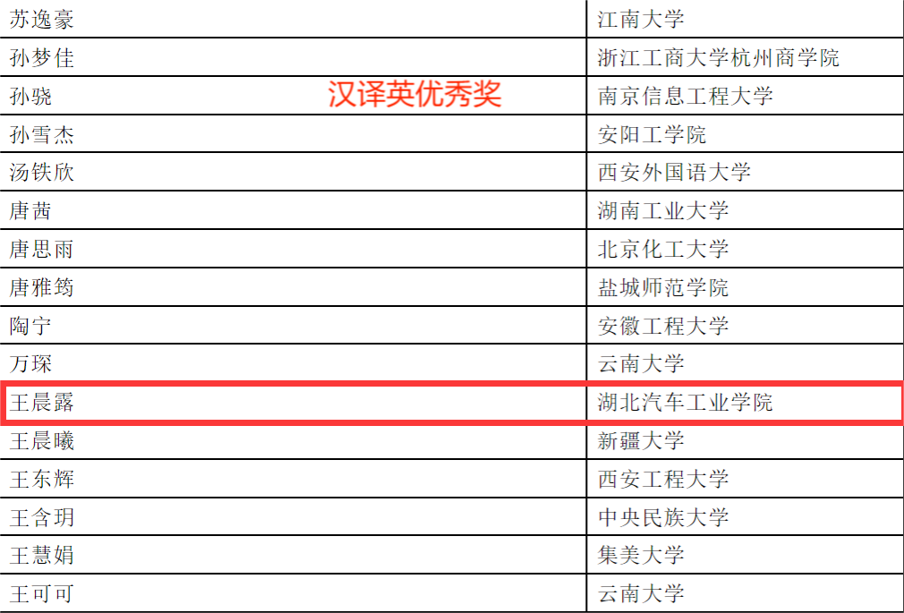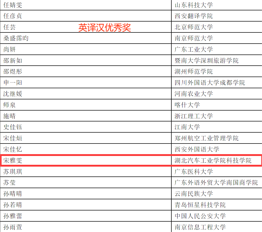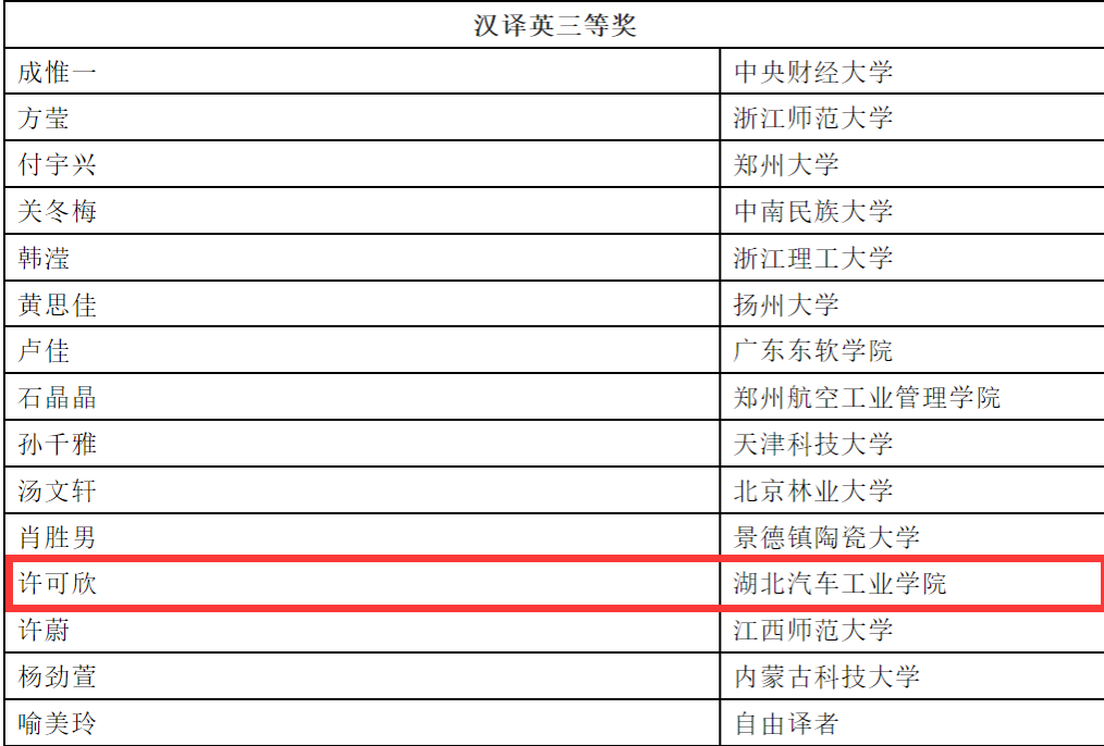 2023年10月17日,第三十五届韩素音国际翻译大赛公布获奖名单。我校外国语学院英语214班许可欣,翻译201班王晨露以及K英语213班宋雅雯在汉译英及英译汉组别的赛事中获得全国三等奖1项、优秀奖2项,其中汉译英组三等奖全国仅有17人获此殊荣。