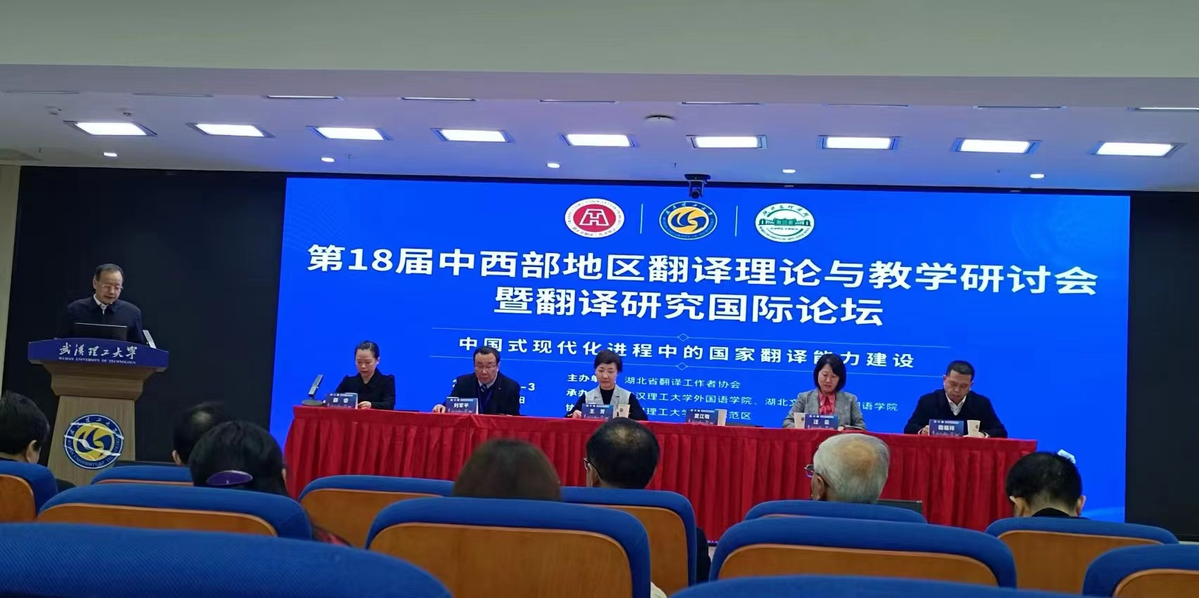 本网讯(文/朱丽)2023年12月2-3日,第十八届中西部地区翻译理论与教学研讨会暨翻译研究国际论坛在武汉理工大学襄阳示范区召开。本次会议由湖北省翻译工作者协会主办,国家外文局原副局长黄友义、襄阳市副市长王芳、武汉理工大学党委副书记夏江敬、全国翻译教指委委员、湖北省翻译协会会长刘军平,以及武汉大学、华中科技大学、广东外语外贸大学等省内外大学的博导、教授和各外国语学院院长。外国语学院院长杨荣广、王吟老师和朱丽博士参会。