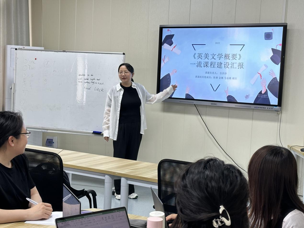 2023年5月15日周一下午,外国语学院翻译系全体教师在3604教室展开了第八次教学法活动,主题为《英美文学概要》一流课程建设汇报。本次教学法活动由全莎莎老师主讲。