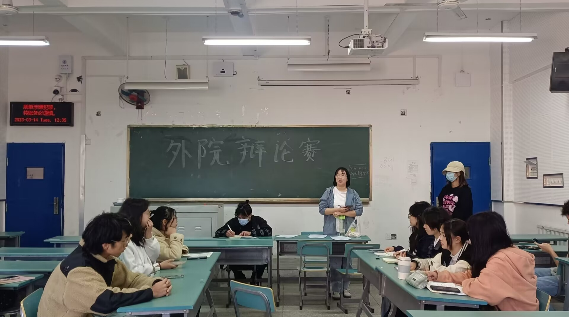 3月14日中午十二点半,外国语学院“防诈骗 辨真假”辩论赛初赛于第六教学楼正式拉开帷幕。