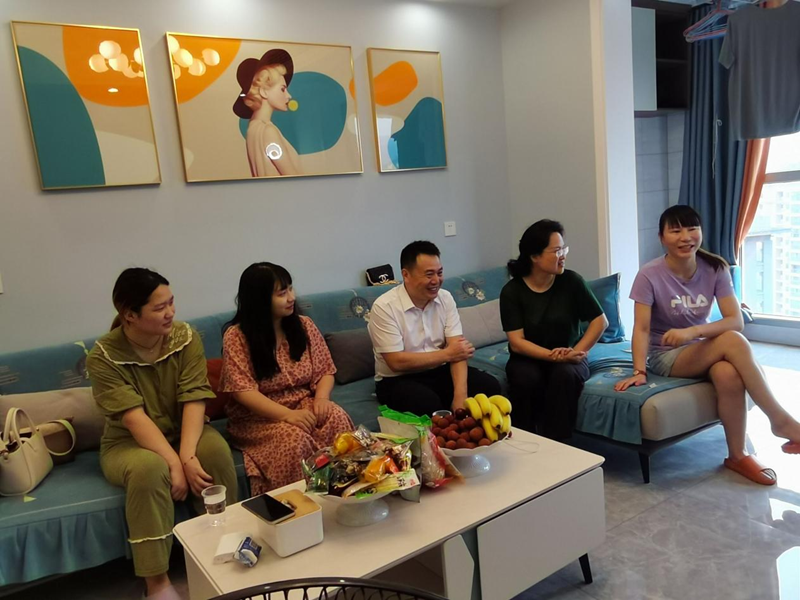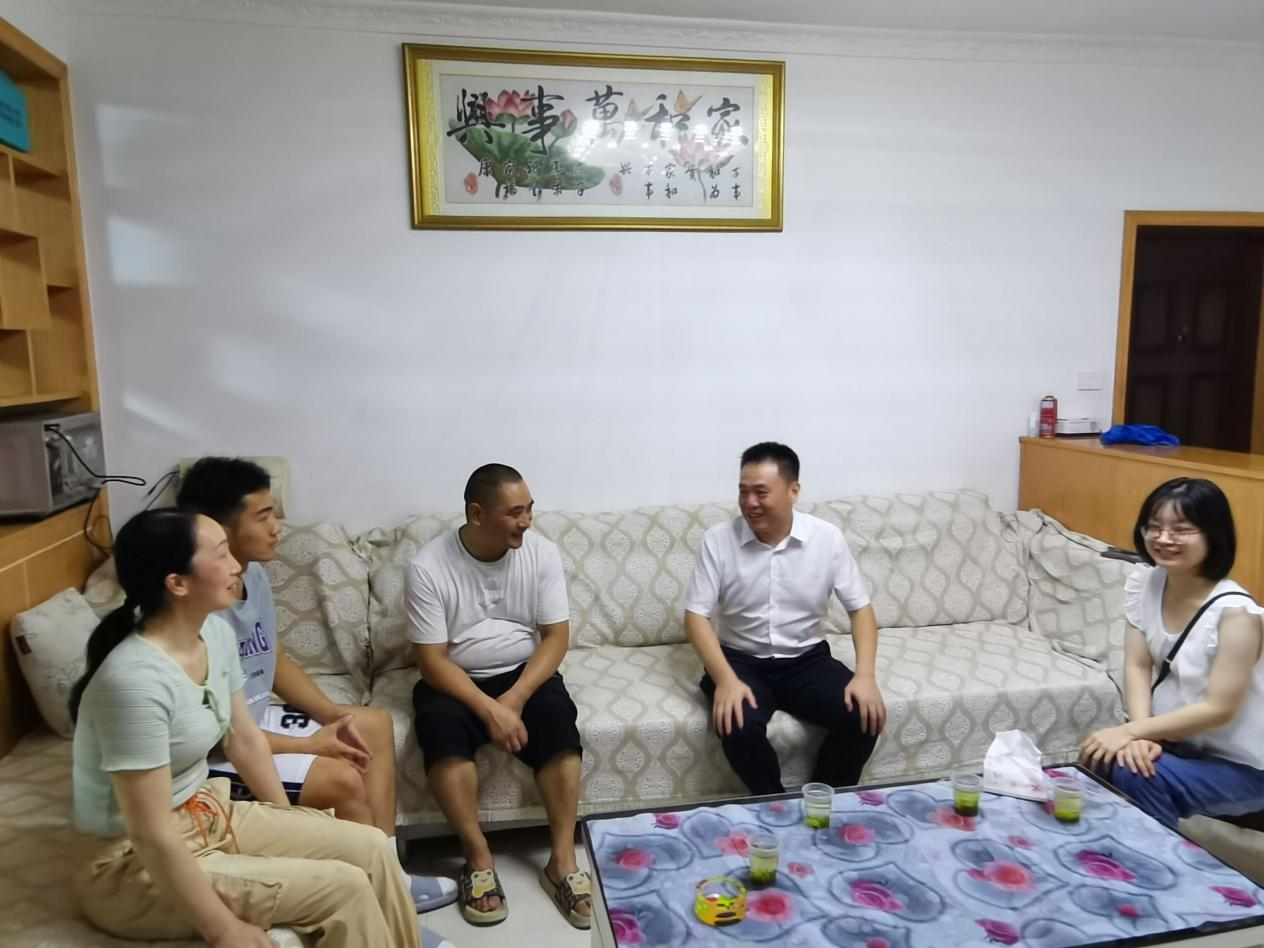(本网讯)为深入贯彻落实“立德树人”的根本任务,强化以学生为本的育人理念,健全家校联动机制,7月3日,外国语学院开展了暑期“辅导员访万家”走访学生家庭活动。学院副书记魏伟、教师汪娅红、刘可欣,学工办辅导员魏院珍、孟甜一同走访慰问了三名学生,与学生家长围坐一起话家常、表关爱,气氛融洽。