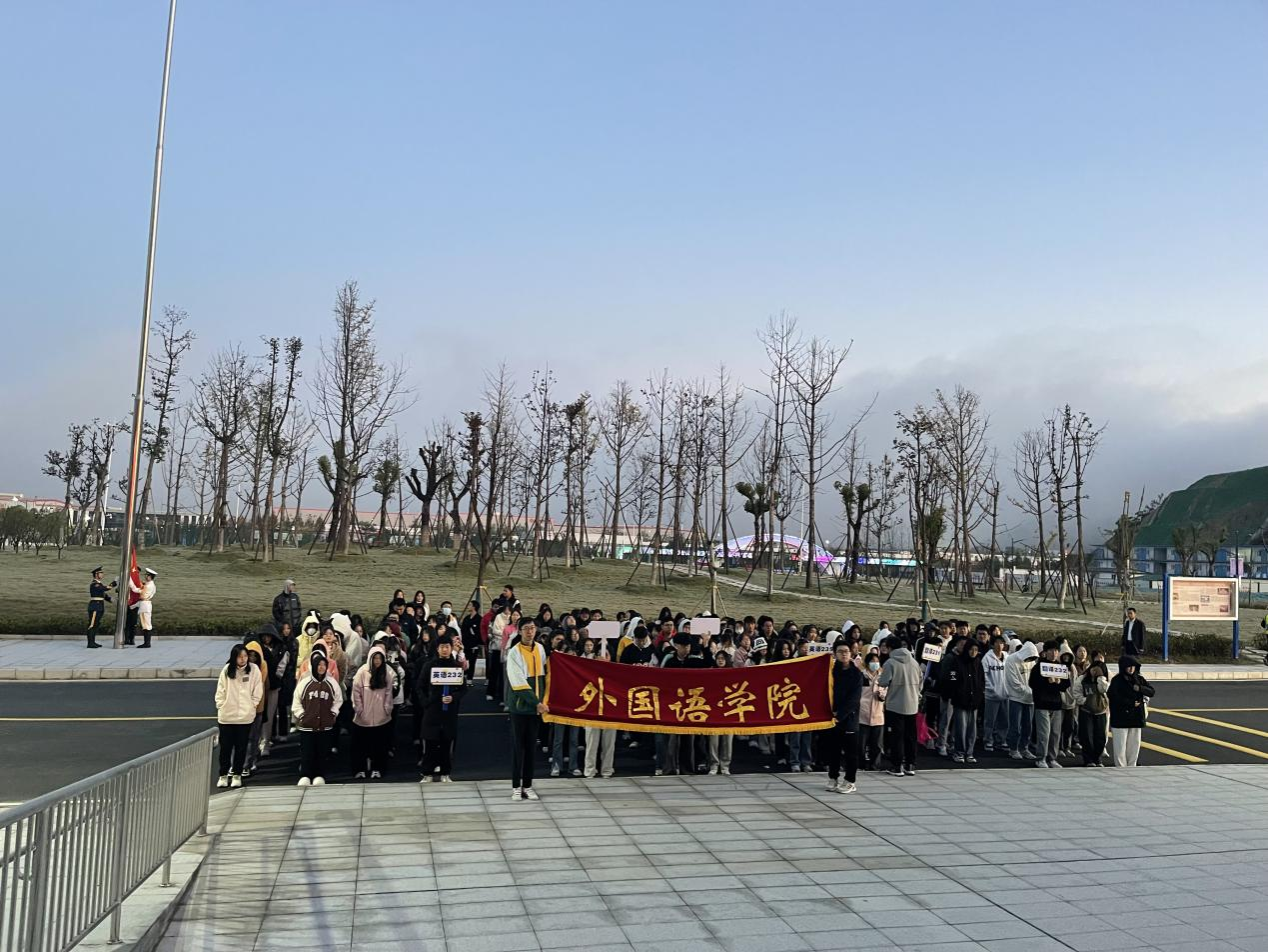 党的二十大报告中明确指出,“要推进文化自信自强,提炼展示中国文明的精神标识和文化精髓,加快构建中国话语和中国叙事体系,讲好中国故事,传播好中国声音,展示可信、可爱、可敬的中国形象,不断提升国家文化软实力和中华文化影响力”。为了进一步了解中国文化,树立文化自信,11月6日早上,外国语学院举办“用外语讲好中华文化,在故事里读懂中国”主题升旗仪式。外国语学院分党委副书记魏伟,全体辅导员老师以及学院2023级学生参加了升旗仪式,英语232樊天怡主持了本次活动。