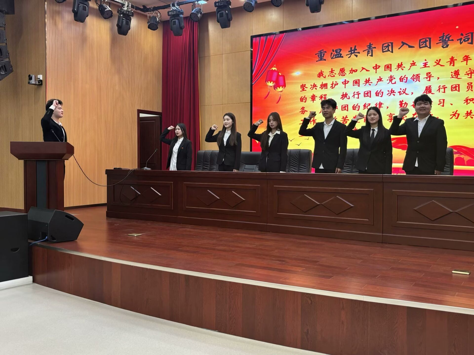 经过各候选委员的竞聘演讲,大会以无记名投票方式选举产生了7名外国语学院主席团成员。分团委副书记候选人刘洋带领全体学生重温入团誓词。