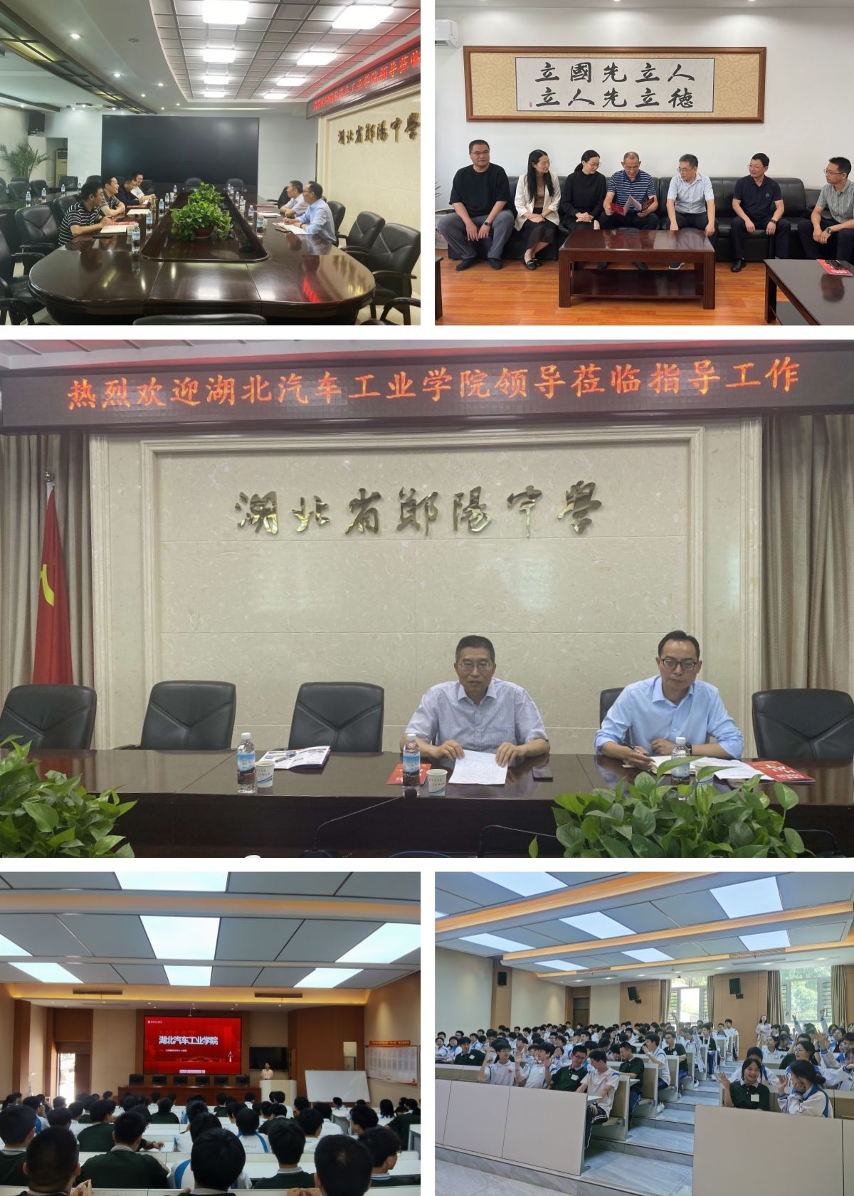 外国语学院精心策划,在学校相关职能部门的支持下,多单位联动,发挥地方高校服务地方经济社会的作用,为十堰市优质生源高中提供智力支持,共同守护学生健康成长。5月17日,学院邀请校领导、责任单位、广泛鼓励动员教师加入招生宣传工作组,校工会主席陈海峰、院长杨荣广、分党委副书记魏伟于5月17日前往十堰市郧阳中学进行招生宣传;分党委书记郭义坤、国际合作交流处处长朱战炜、学工部副部长杜昕俊、驾校校长邵帅、心理健康中心教师王嘉丽前往十堰市东风高级中学进行招生宣传。