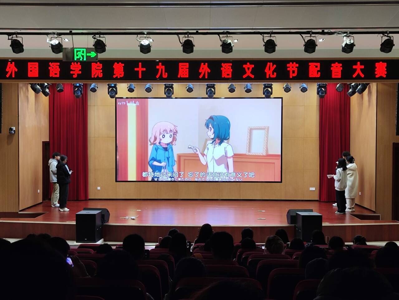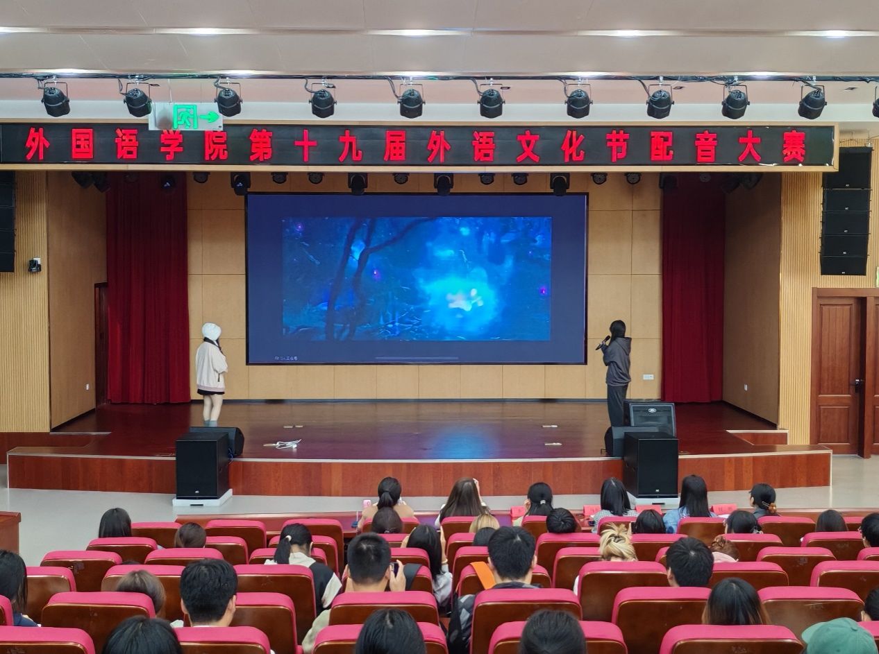 为了丰富校园文化建设,激发同学们的创造力和表现力,彰显我校学子风貌,外国语学院分别邀请了马东黎、郭静、付艳、李铮、孔慧玲和陈名凤六位评委老师。于11月13日晚18:30,在产教大楼四楼报告厅开展了十九届外语文化节配音大赛。
