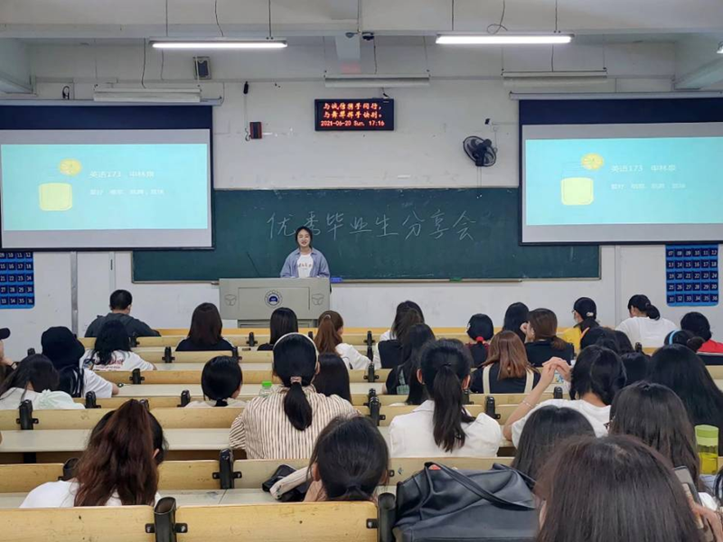 6月20日晚,外国语学院于6111教室举办了优秀毕业生分享会,此次活动特邀请17级优秀毕业生代表申林泉进行经验分享,学院19级、20级学生悉数参加。