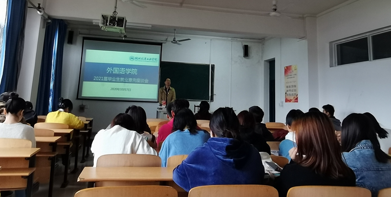 为准确掌握2021届全体同学的就业意向,帮助毕业生提前做好就业准备,2020年10月7日下午外国语学院在3601会议室组织召开了2021届毕业生就业意向座谈会,会议由院长助理柯宁立主持,毕业班班主任、学工办魏院珍及2021届全体毕业生参加了此次座谈会。会议伊始,柯老师首先向同学们传达了本次座谈会的目的,一是详细了解每位同学的就业意向,二是希望通过座谈会让同学们尽早明确目标,朝着目标提前做好准备。