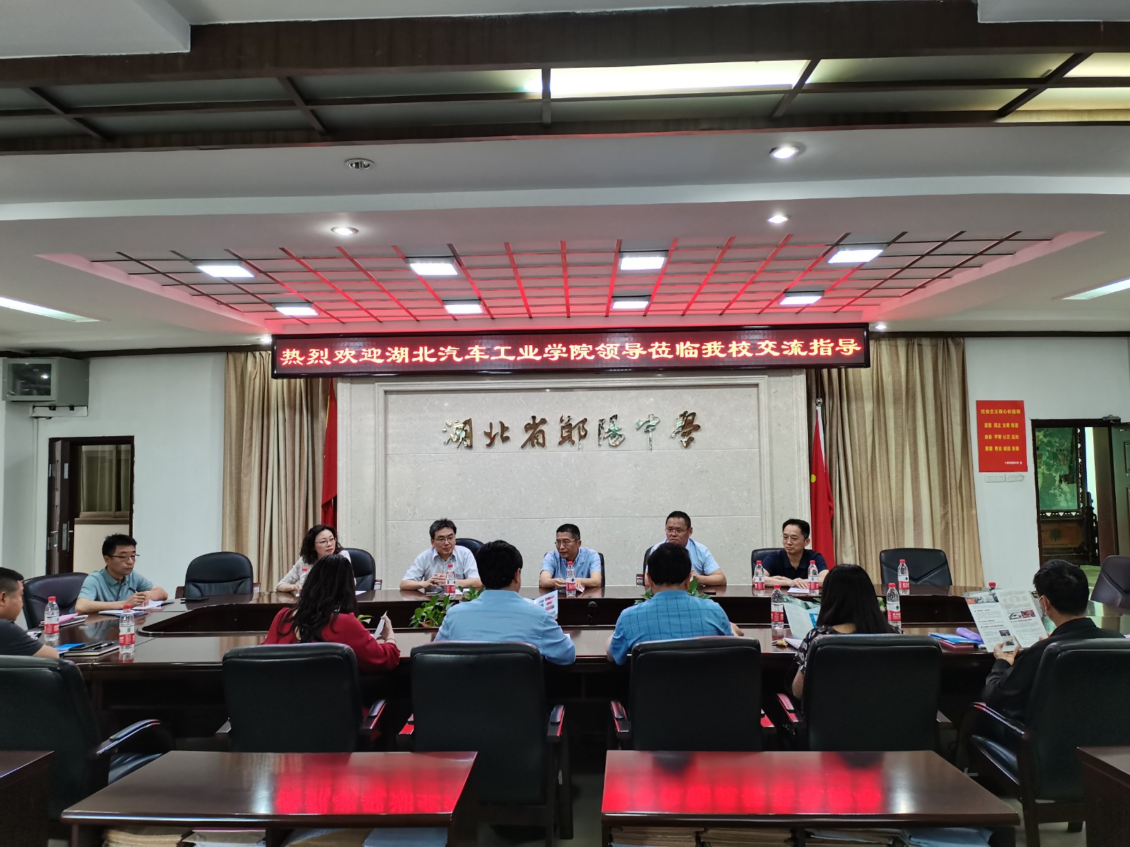 陈海峰主席一行与郧阳中学副校长殷国银、党委副书记张世奎和高三年级主任、班主任代表进行了交流座谈。会谈中,陈海峰重点介绍了学校的办学历史、学科特色与专业优势、发展规划等情况,希望两校能继续加强沟通和交流,发挥各自资源优势,实现合作共赢。郧阳中学领导表示将一如既往地支持汽院的招生工作,一定大力宣传汽院,为学生家长做好推荐,引导鼓励学生报考,为我校输送更多优秀人才。随后,与会人员围绕新高考政策、志愿填报、人才培养、就业前景等方面进行深入交流,双方就进一步建立联系、加强合作达成一致意愿。