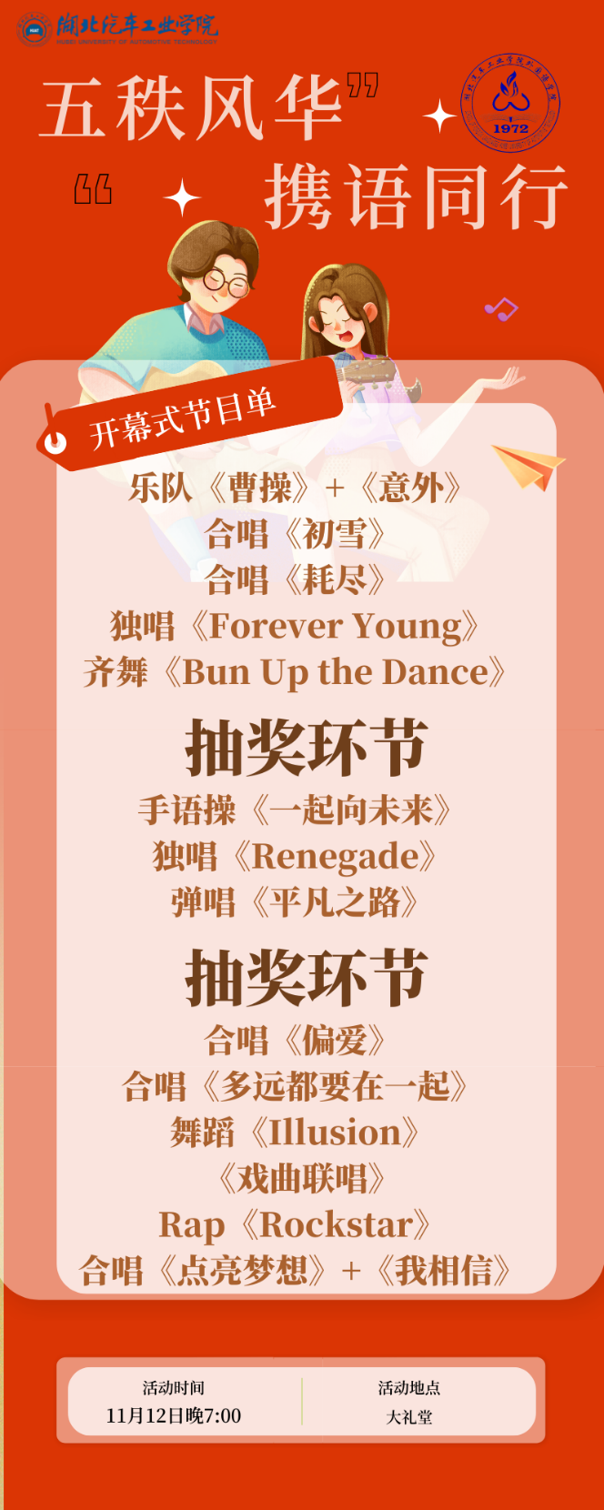 五十诞辰,向五十华诞献礼,11月12日晚七点外国语学院顺利举办了第十七届外语文化节开幕式。开幕式以“五秩风华,携语同行”为主题,用语言传递祝福,用韵律彰显欢乐。外国语学院分党委书记宋涛、院长朱战炜、副院长杨荣广、副院长王辰晖、国际交流与合作处副处长苏子波等领导老师出席了此次开幕式,同时邀请到诸多校友参会,广大师生齐聚一堂,共享欢乐。