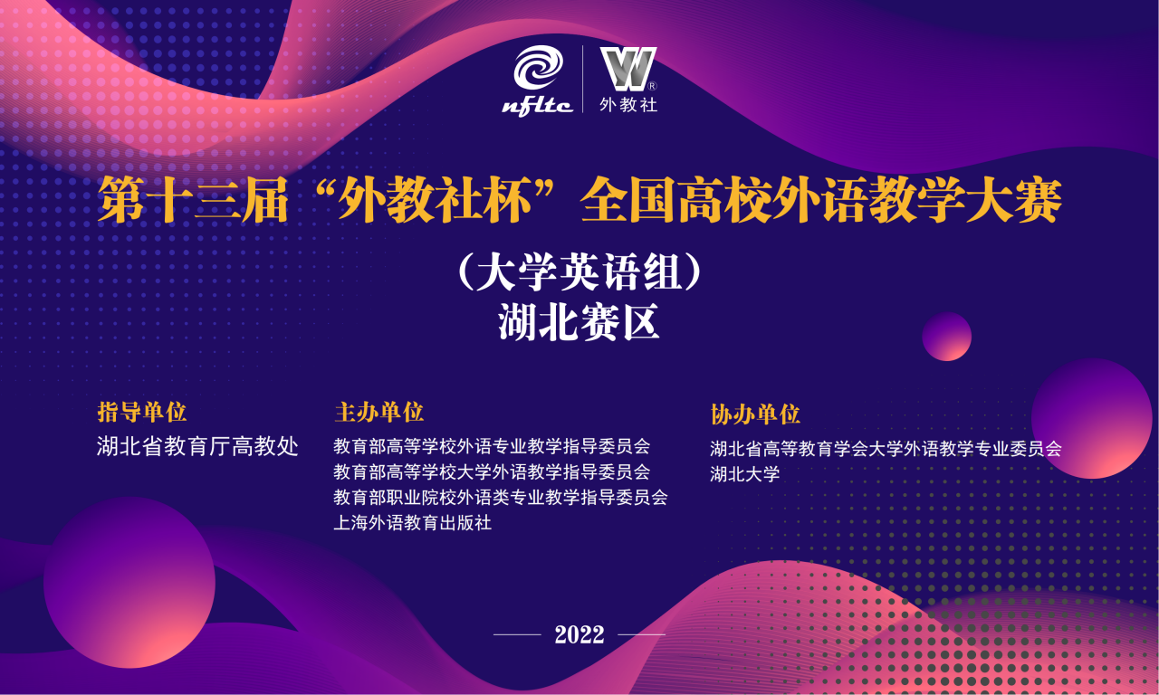 2022年11月6日,第十三届“外教社杯”全国高校外语教学大赛(大学英语组)湖北赛区决赛圆满落幕。经过积极备赛、认真磨课,我校外国语学院参加教师凭借扎实的语言基本功、富有特色的教学风格、优秀的临场应变能力取得了优异成绩。我院教师陈琼荣获“大学英语视听说组”二等奖,田丹、冯丹分别荣获“大学英语综合组” 三等奖和“大学英语视听说组”三等奖。