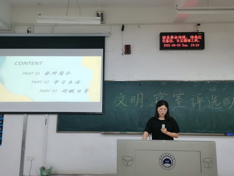 比赛中,各寝室均以ppt的形式向大家展示了各具特色的寝室设计成果。不同的寝室规章,舍歌,废物利用的装饰,墙上的励志标语,温馨的照片集,整齐的书桌,一系列奖状、荣誉证书等照片来展现寝室学风浓厚、气氛和谐和寝室成员相处融洽、共同学习、共同进步,展示了外院文明寝室的风采。最终桃二215荣获一等奖,西六503、401荣获二等奖,桃二217、桃四247、西六402荣获三等奖。