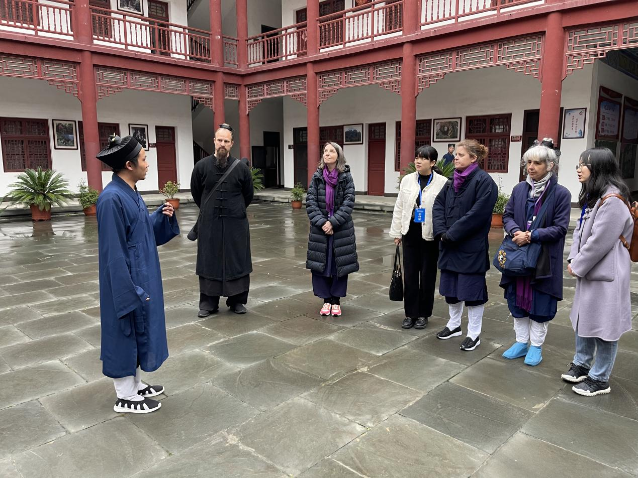 会务期间,大家各司其职。会前,翟全伟老师将中文会议手册翻译成了英文版。会议期间叶慧老师作为瑞士道教协会的陪同翻译,邓晶晶同学作为墨西哥道教协会的陪同翻译,助力外国友人在会议期间的国际友人的顺畅沟通。在国际道教人才培养交流会上,外国语学院翻译系叶慧老师和马克思主义学院的方垚两位老师还承担了会议交替传译任务,并圆满完成了该任务,为此次盛会的顺利进行做出了重要贡献。