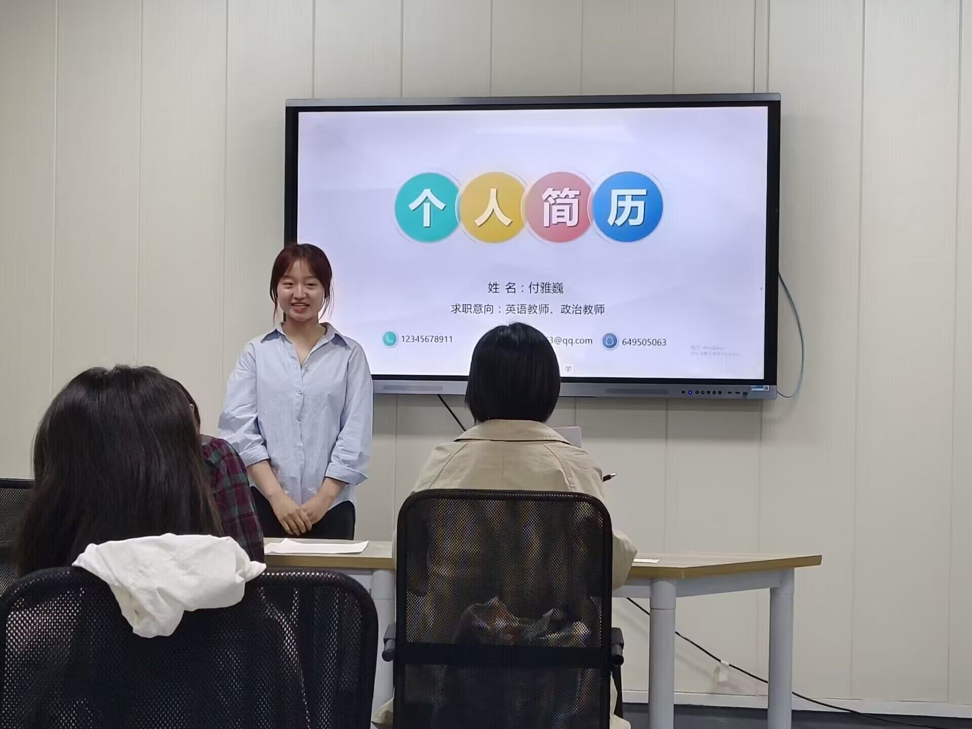 比赛过程中,选手以PPT的形式将个人基本信息、实践经历、自我评价等内容向大家进行展示。评委老师以学生专业为基础,围绕简历设计的科学性、合理性、创新性等方面进行了评选打分。最后,付雅巍同学制作的简历在比赛中荣登榜首,获得比赛一等奖。
