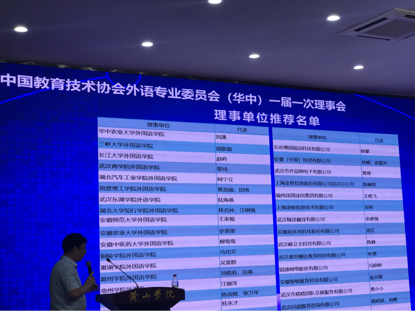 8月27号,由中国教育技术协会外语专业委员会指导,中国教育技术协会外语专业委员会(华中)主办,安徽黄山学院外国语学院承办的华中高校外语教育数字化转型研讨会暨中国教育技术协会外语专业委员会(华中)一届一次理事会在安徽黄山市召开。来自北京、天津等全国各地的外专委委员以及湖北、湖南、安徽、河南等华中四省几十所高校外语学院领导和外语实验技术界的专家、学者、外语教育技术企业代表100余人出席会议。我院代表应邀参加会议。