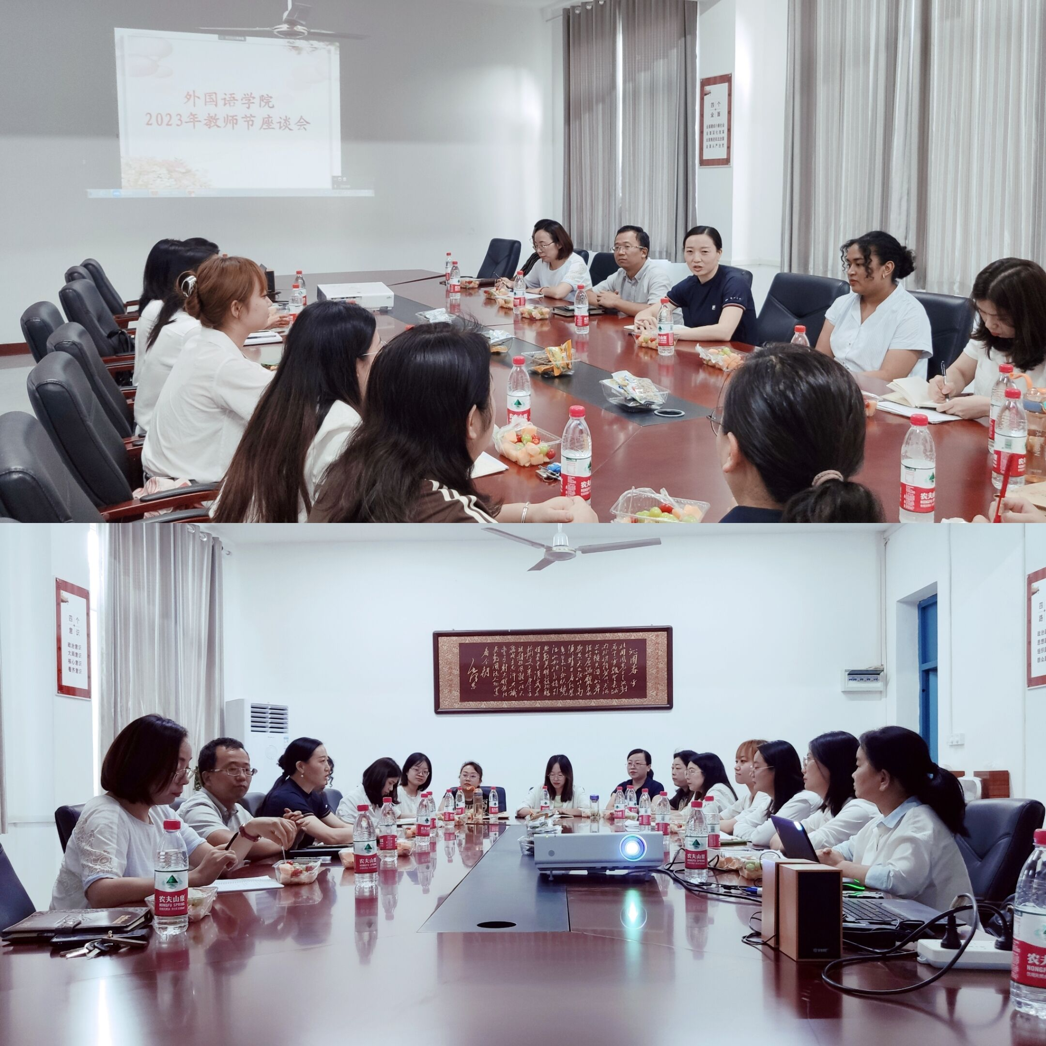 在第39个教师节来临之际,为致敬最美“外语人”,弘扬师德铸师魂!9月8日下午,外国语学院在3503会议室召开“躬耕教坛,强国有我”庆祝2023年教师节座谈会。会议采取线上线下结合形式,参加座谈会有学院在家领导班子、近两年新入职教师及其工作导师、系主任、国内外深造和访学部分教师、外籍教师。会议由副院长翟全伟主持。