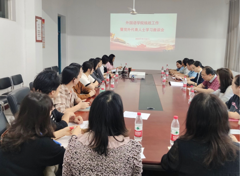 9月22月下午,外国语学院在学院3503会议室召开了统战工作暨党外代表人士学习座谈会。会议由分党委书记郭义坤主持,分党委副书记魏伟、副院长翟全伟、各民主党派、无党派人士代表等20余人通过线上线下的形式参加了会议。