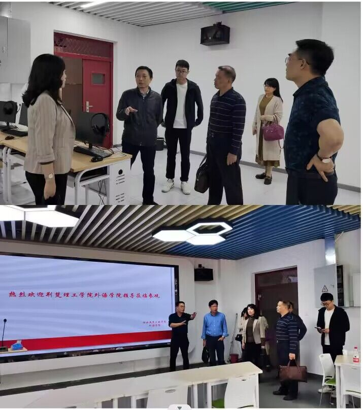 会后,王辰晖副院长以及陈小勋主任带领刘诺亚院长一行参观了我校的科创中心、大学外语自主学习中心、语音室、智慧教室,并在参观过程详细介绍了实验室建设,以及学生自主学习管理的相关细节。