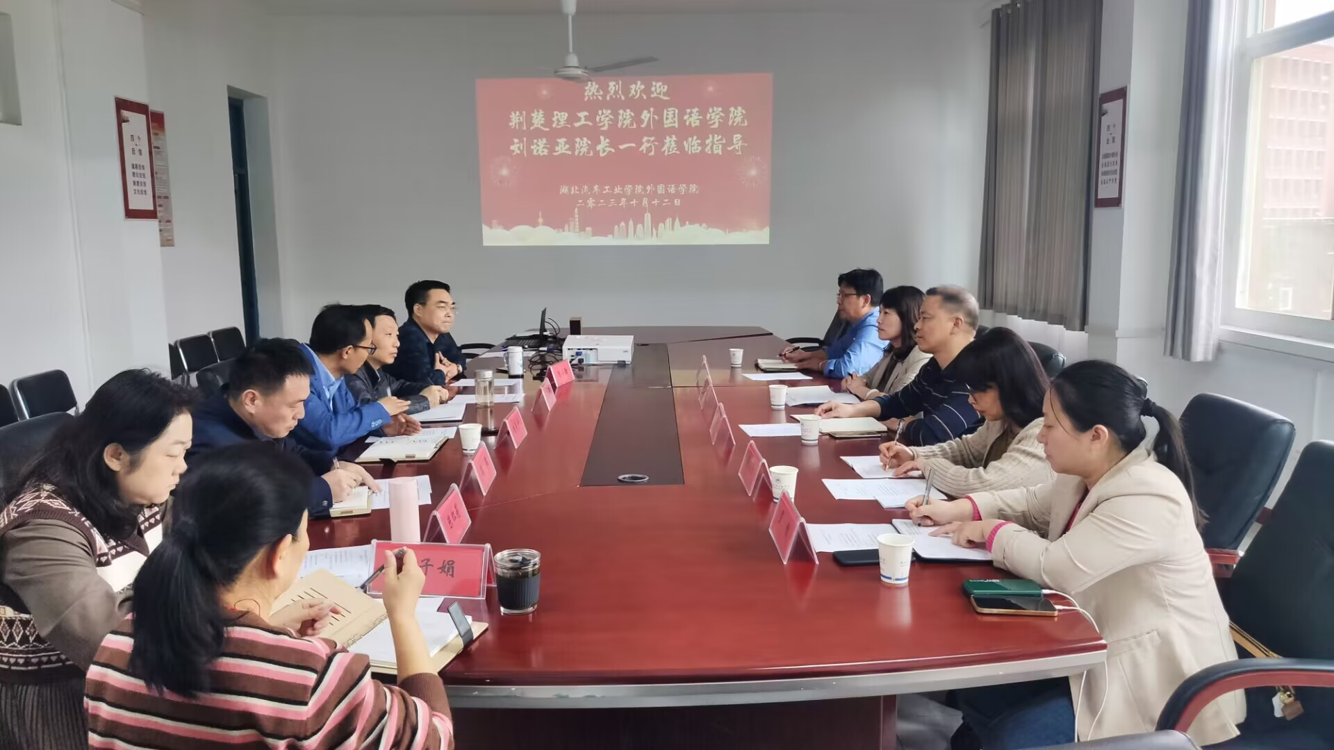 10月12日下午,荆楚理工学院外国语学院院长刘诺亚、副院长吴晓凤、大学英语一系主任邱云峰、大学英语二系主任陈吕芳、英语专业负责人罗倩一行五人来外国语学院调研交流,外国语学院院长杨荣广主持会议,副院长王辰晖、分党委副书记魏伟以及陈小勋、高子娟、陈红莉等参加了此次交流座谈会。