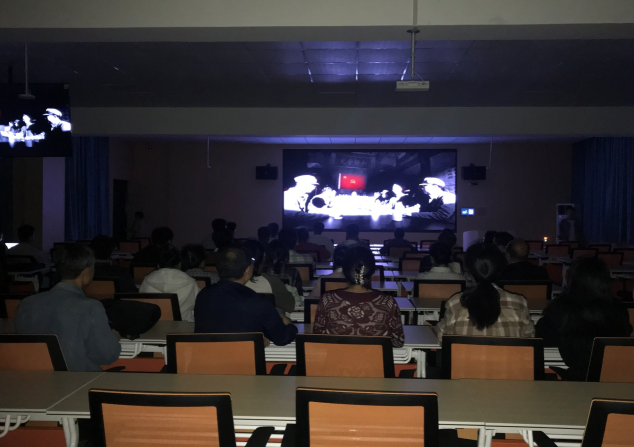 会议结束后,全体教职工党员和学生党员前往汽车工程学院报告厅共同观看红色电影《毛泽东在才溪》。