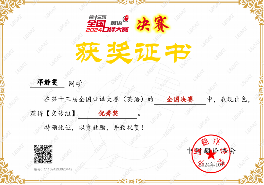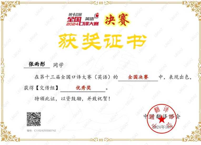 近日,第十三届全国口译大赛全国决赛圆满落幕,我院英语专业的罗英杰、张雨彤、邓静雯三位同学,在历经多轮选拔与激烈比拼后,成功晋级并代表我校登上全国决赛的舞台。在决赛中,他们展现了我院学子在语言学习与实践中的成就与精神风貌,最终均荣获优秀奖。