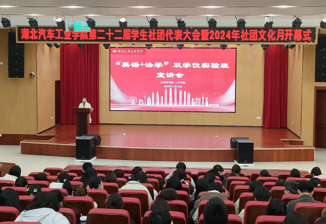 2024年11月18日下午,“英语+法学”双学位实验班宣讲会由外国语学院、人文学院精心策划,英语专业系主任王吟老师和法学专业负责人景勤老师主讲,两个学院2024级全体新生积极参与,声势浩大。