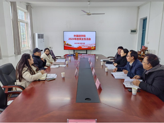 本网讯(文/图 龚建强)2025年2月24日下午,外国语学院领导班子2024年度民主生活会在学院3503会议室召开,校工会主席陈海峰、马克思主义学院副院长成继平、汽车工程学院分团委书记李雅琨等督导组一行3人到会指导,外国语学院领导班子全体成员参加了会议,会议由分党委书记郭义坤主持。