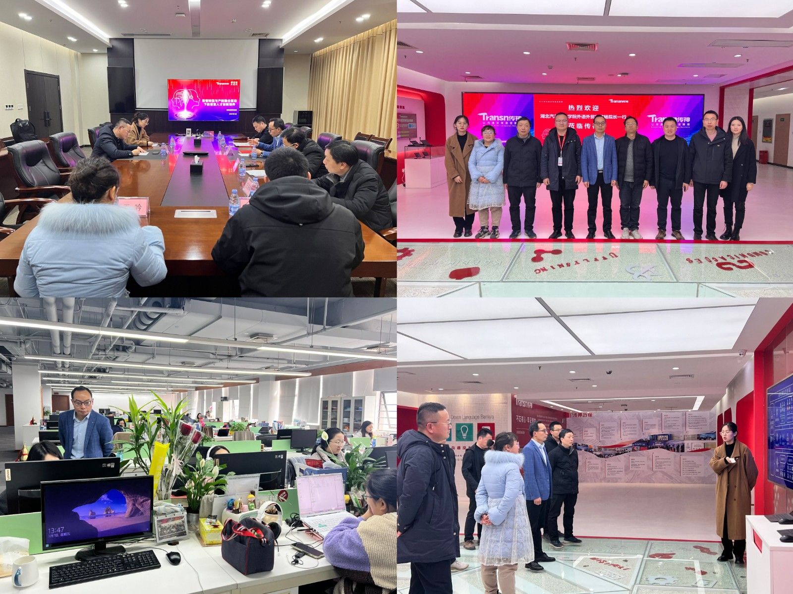 3月7日,在传神语联网网络科技有限公司,杨荣广一行深入调研人工智能技术在多语种翻译、跨境电商等场景的应用现状。传神语联教育事业部大区经理梅涛指出,当前语言服务行业对“外语+技术”复合型人才需求旺盛,但高校人才培养与行业技术前沿仍存在一定脱节。座谈会上,双方就选派青年教师赴企业挂职锻炼、设立专项实习岗位等达成初步合作意向,为未来学生实习就业开辟新渠道。