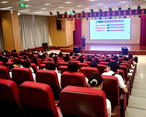 于产教大楼召开英语、翻译专业实习动员大会。英语系主任王吟全面部署实习工作,明确以“理论实践融合、社会身份转化、个人能力跃升"为核心目标,要求全体学生完成8周实践任务并按时提交实习周志及实习报告。结合真实警示案例,王吟主任重点强调涵盖人身、财产、交通、职业、生活安全及防范违法犯罪的六大安全红线。