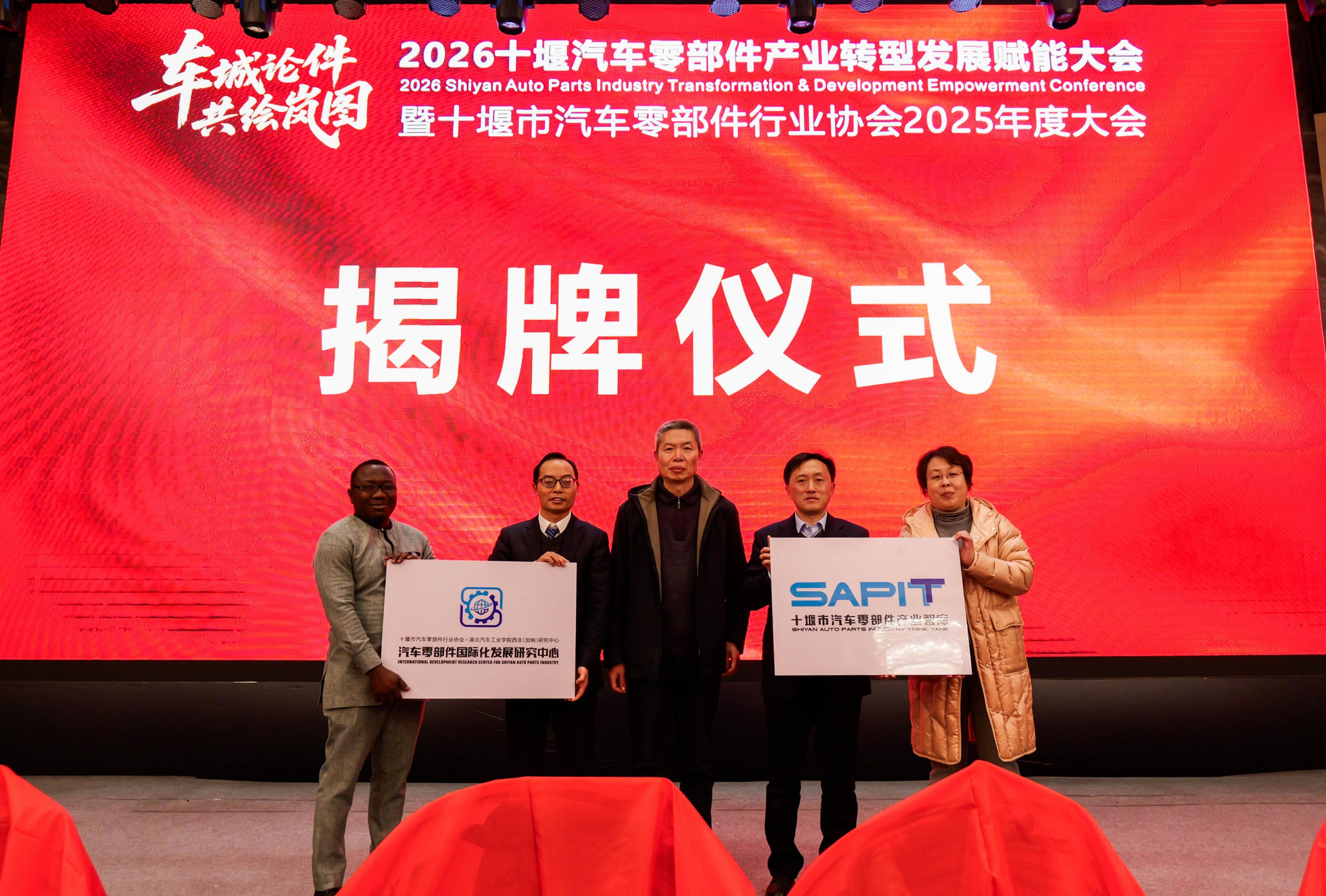 本网讯(文\图 孙媛)近日,2026十堰汽车零部件产业转型发展赋能大会暨十堰市汽车零部件行业协会2025年度大会隆重召开。学院院长杨荣广及西非(加纳)研究中心研究员Gabriel Asante应邀出席大会,与政府部门、行业协会及企业代表共商产业转型发展新路径。