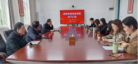 召开教育学组课题预申报线下汇报会议。学院院长杨荣广,副院长王辰晖、翟全伟莅临指导,全体教育学申报小组成员参会。