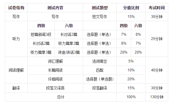 大学英语考试根据理工科本科和文理科本科用的两个《大学英语教学大纲》,由教育部(原国家教育委员会)高等教育司组织的全国统一的单科性标准化教学考试,分大学英语四级考试(CET-4)和大学英语六级考试(CET-6)两种。每年考试过后8月份或9月份,来年2月或3月公布成绩并颁发成绩单,根据教育部规定四六级考试不设置及格线,四级425分(含425分)以上可以报考六级,所以大家普遍认为四六级的合格线为425分。英语四六级的分数是排位分,没有总分。报名时间CET全国英语四六级考试的考试时间为:每年6月份、12月份(每年时间略有不同)。