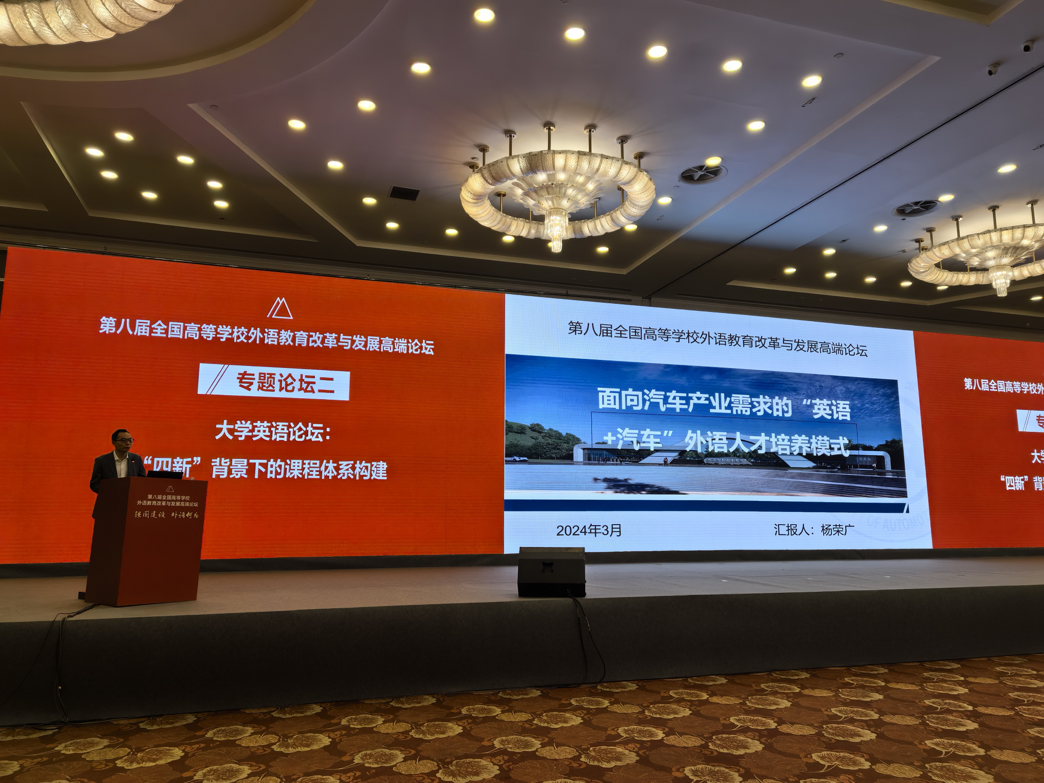 外国语学院教师杨荣广应邀参加此次研讨会并以“面向汽车产业需求的‘英语+汽车’外语人才培养模式”为题做主题发言。杨荣广在分享中介绍了学校的发展历史和当前进展,并以外国语学院公共外语的“分类分级模式”和英语类专业的“英语+汽车”培养模式为例阐释了新工科和新文科背景下外语学科在培养应用复合型人才方面面临的挑战与机遇。与会教指委专家肯定了我校外语人才培养的特色路径,指出这是打破目前全国高校外语人才培养“千校一面”模式的有益探索,值得其他高校参考和借鉴。与会教师也对分享中提出的课程体系建构模式展开了热烈讨论。
