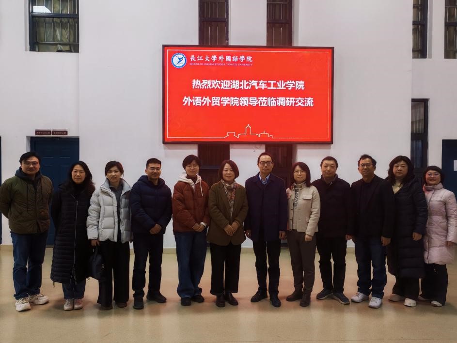 一行于12月3日至5日赴长江大学和荆楚理工学院开展调研交流活动。本次调研由学院院长杨荣广带队,副院长王辰晖、翟全伟、以及英语系、翻译系和公共外语教学部负责人一同参加了调研。
