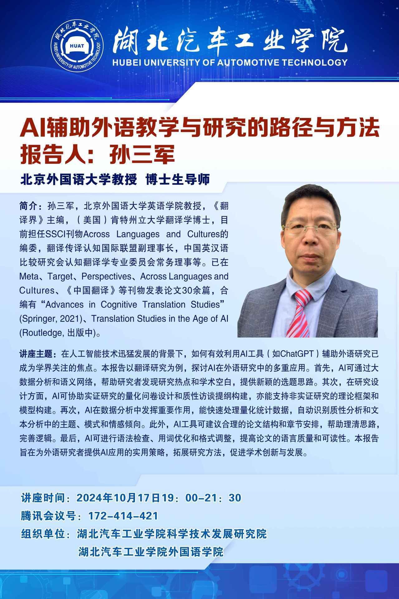 【活动通知】AI辅助外语教学与研究的路径与方法讲座通知