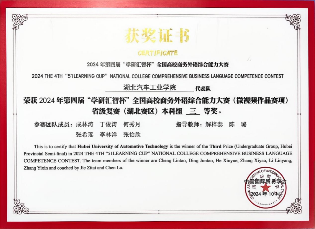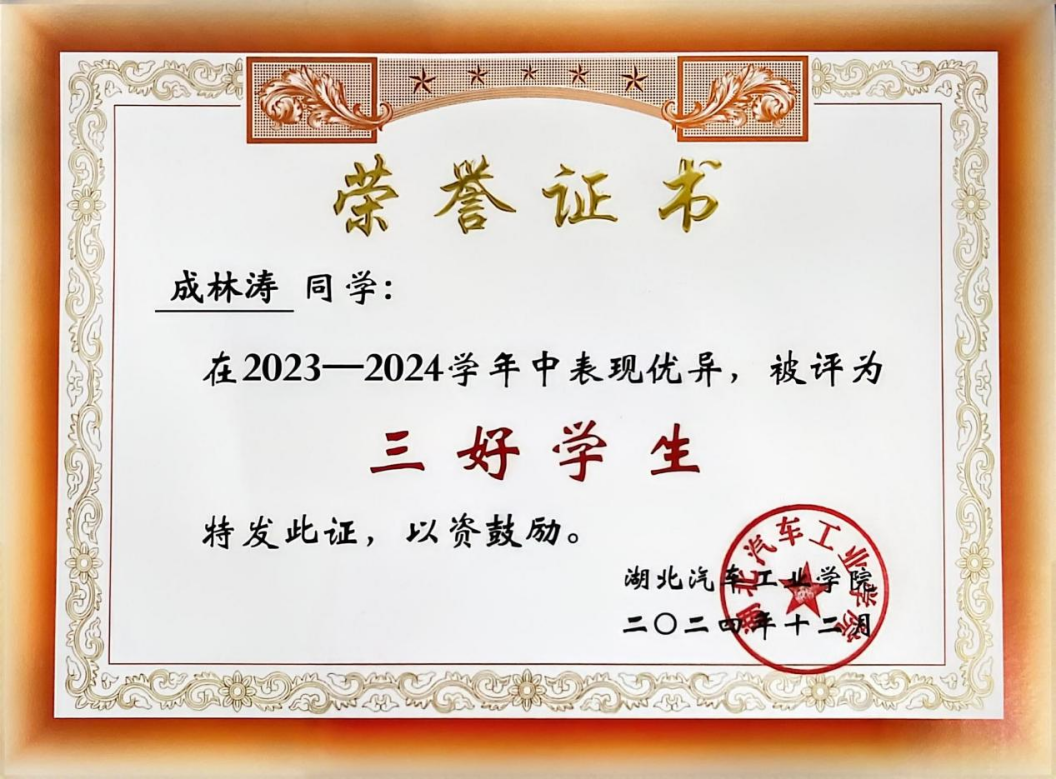 立身以立学为先,立学以读书为本。在专业学习中,成林涛始终保持严谨专注的态度,专业成绩居年级前5%。他语言功底扎实,以优异的成绩通过了各项专业语言考试和学业考试,在学习中坚持学思结合、知行合一,以精益求精的态度不断提升专业硬实力。他在加强理论知识学习的同时,坚持以考促学,在竞赛实践中不断夯实自己的专业知识。凭借扎实的学业表现,他连续多次斩获人民奖学金,曾荣获“三好学生”、第四届全国高校商务外语综合能力大赛省赛三等奖等荣誉、奖项,成为班级、学院的学业标杆。
